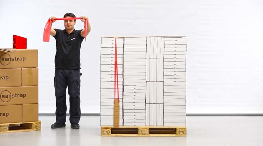 Ein weiterer Vorteil: sanstrap® spart Material, da es mehrfach verwendet werden kann. Die Wiederverwendbarkeit ist besonders im Vergleich zu Stretchfolie ein echter Pluspunkt in puncto Nachhaltigkeit und Wirtschaftlichkeit.